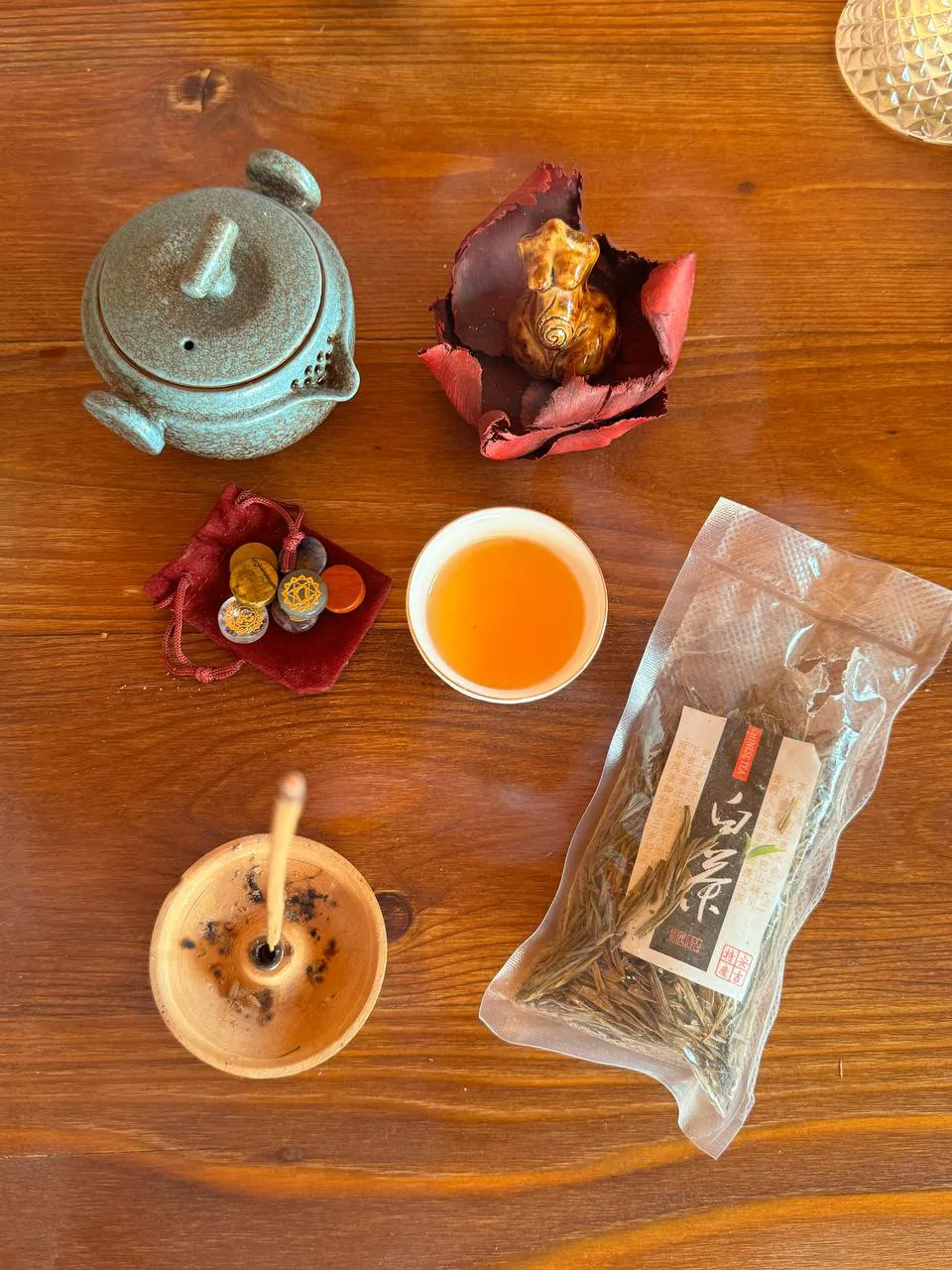 Не зря она называется именно церемонией, это момент осознанности того, чего нам так не хватает в этом быстром современном мире. Сколько раз в день мы реально думаем о том, что делаем сейчас? Принимаем душ, не чувствуя температуру воды, едим, не чувствуя вкуса, и живем, не видя красоты момента. На чайной церемонии каждая пролива меняет свой вкус, открываются новые ноты и раскрывается вкус. Мы можем быть в моменте хотя бы на эти полчаса почувствовать вкус жизни и побыть в тишине. Можно даже назвать это визуальной медитацией: глаза смотрят на то, как наливается чай и дымится кипятком, носом чувствуем аромат, а руками — тепло чашки. Один раз попробуешь – захочется еще, еще и еще. А потом не успеешь оглянуться, как у тебя уже по три набора пиалов, своя чабань ручной работы и пачка сандаловых благовоний.